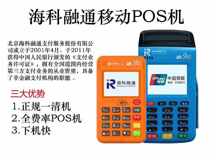 北京海科融通POS機旗下有傳統大機、智能POS機、電簽版店掌柜刷卡機。刷卡支持資金秒到,可365天天天秒到,資金安全有保障,全部都是本地真實商戶,根據刷卡時間和金額智能匹配優質商戶,筆筆帶積分,養卡提額、美化賬單,通通搞定!