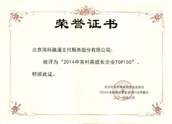 公司成為“中關村高成長企業TOP100”企業