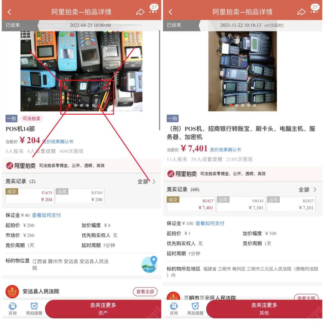 最后,至于這些POS機的來源,有些可能涉及XQ案件,拒付案件,有些可能涉及非法經營案件等,但最后這個聯迪的屬于破產案件。大家關注這些的同時,也要記得遵紀守法,不然哪天或許你手里的機器也被拿來拍賣。