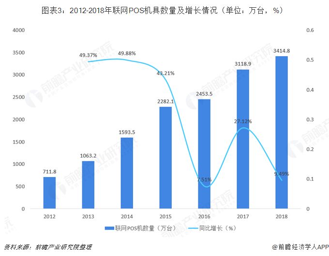 受理市場環(huán)境不斷完善。截至2018年末,我國聯(lián)網(wǎng)POS機(jī)具共有3414.82萬臺(tái),較上年增長295.96萬臺(tái),全國每萬人對(duì)應(yīng)的POS機(jī)具數(shù)量245.66臺(tái),同比增長8.91%,全國聯(lián)網(wǎng)POS機(jī)數(shù)和聯(lián)網(wǎng)商戶數(shù)的持續(xù)增長為智能POS收單發(fā)展提供了廣闊空間,智能POS對(duì)于第三方支付收單市場具有重要的業(yè)務(wù)升級(jí)作用。